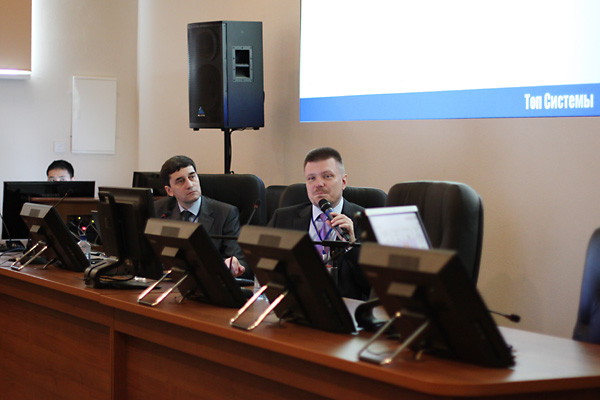 С микрофоном - Игорь Кочан, ведущий аналитик компании "Топ Системы"