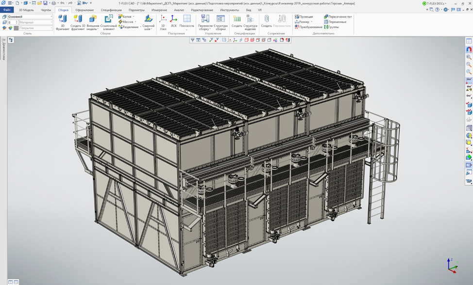 Мы не смогли оставить без внимания проект Блок аппаратов воздушного охлаждения, автор Сергей Терских. Проект стал победителем в номинации Самая большая сборка (больше 50 тыс. тел).