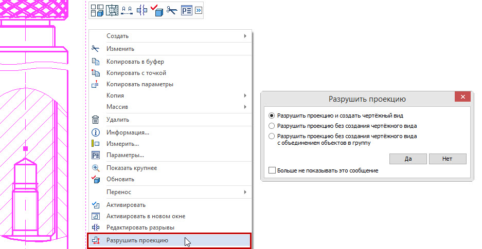 Обновлён диалог разрушения проекций – появилась возможность выбирать разные алгоритмы разрушения: