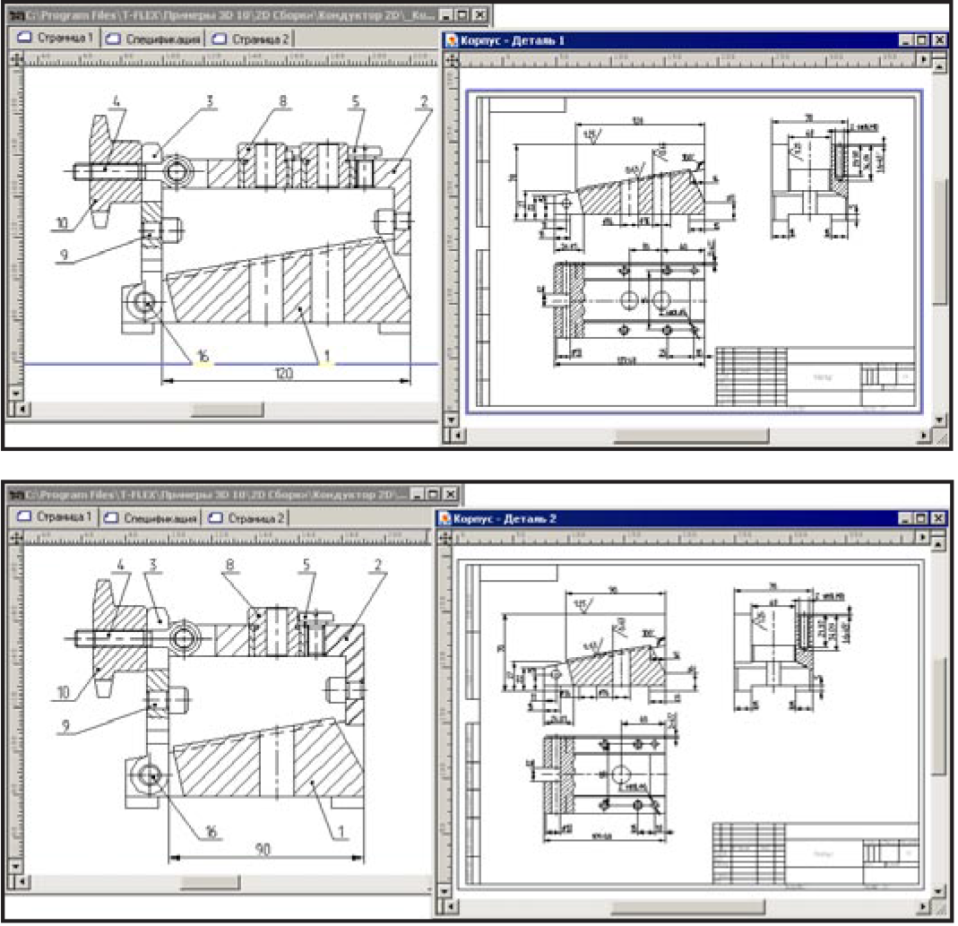 Используя параметризацию, на базе одного документа T-FLEX CAD можно создавать целые САПР, позволяющие, меняя входные параметры изделия, молниеносно получать комплект документации на новый вариант изделия.
