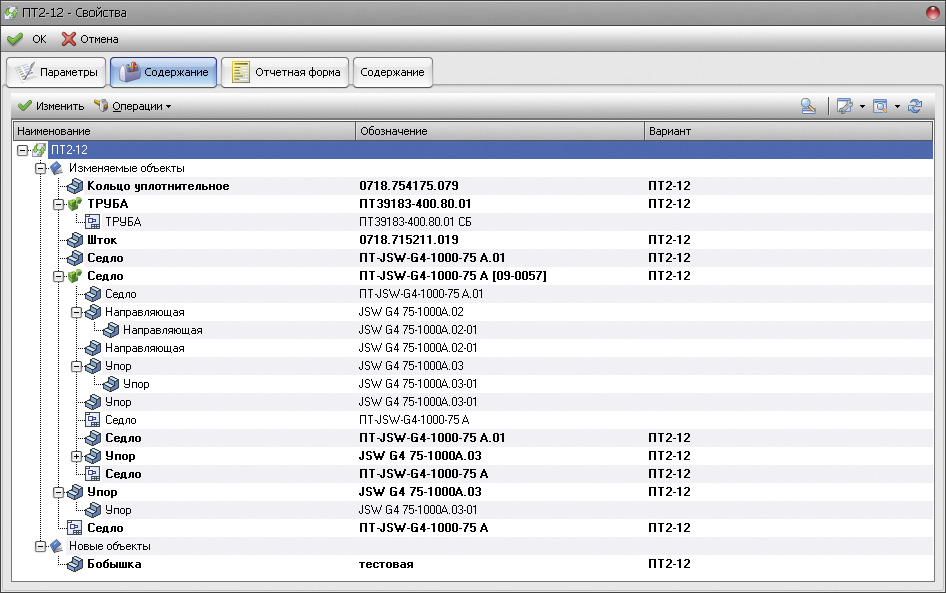 - для изменения: создание варианта объекта. В случае изменения исполнения теперь меняется не весь комплект, а лишь конкретное исполнение.