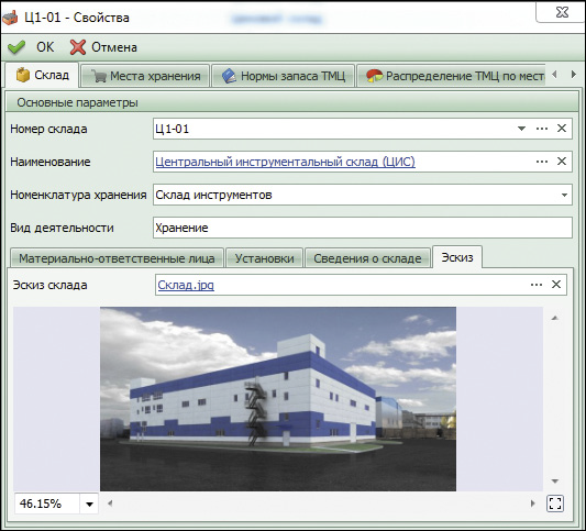 Для каждого склада имеется возможность вводить нормы запаса/ задела товарно-материальных ценностей, а для складов с типом «Рабочий участок» — в карты типового оснащения.