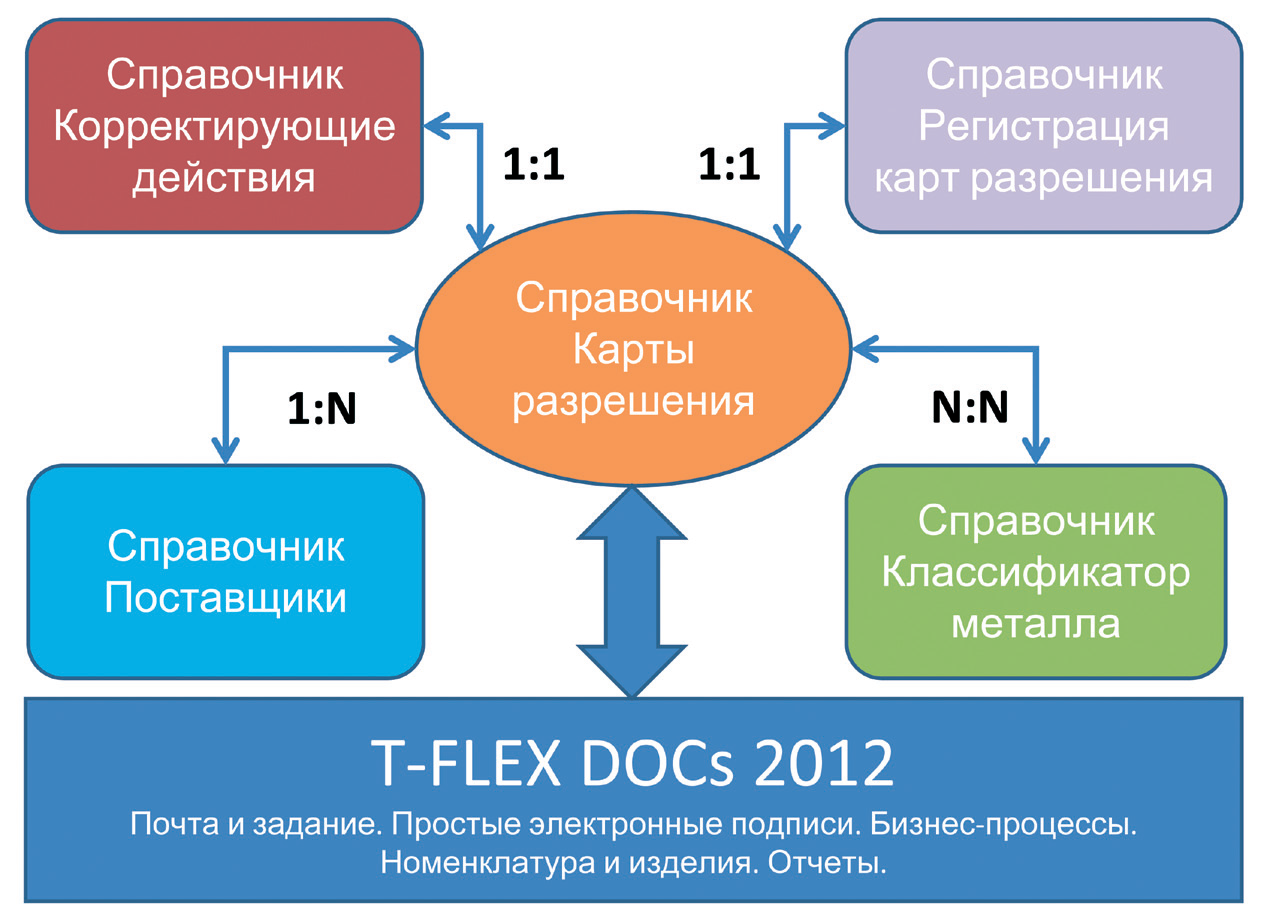 Изучив предметную область задачи, мы разработали модуль «Электронное согласование карт разрешения на замену металла» на базе си-стемы T-FLEX DOCs — составной части системы T-FLEX PLM. Идея, основные цели и задачи были описаны в концептуальном проекте. Также было разработано и согласовано с подразделениями техническое задание на разработку необходимого функционала. После решения всех организационных вопросов реализовать новый модуль не составило труда, поскольку система T-FLEX DOCs предоставляет все необходимые инструменты для разработки задач любой сложности. Цели и задачи проекта: