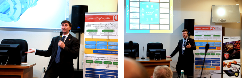 Следующее выступление гости форума ждали с особым нетерпением. Впервые после конференции «Информационные технологии на службе оборонно-промышленного комплекса» (ИТОПК) на форуме был представлен уникальный проект «Гербарий», разрабатываемый Фондом перспективных исследований при активном участии компании «Топ Системы». Сергей Юрьевич Козлов, директор по разработкам компании «Топ Системы», рассказал слушателям о целях проекта «Гербарий», реальных перспективах развития отечественного инженерного ПО и в целом об изменениях российского рынка инженерного программного обеспечения в ближайшем будущем.