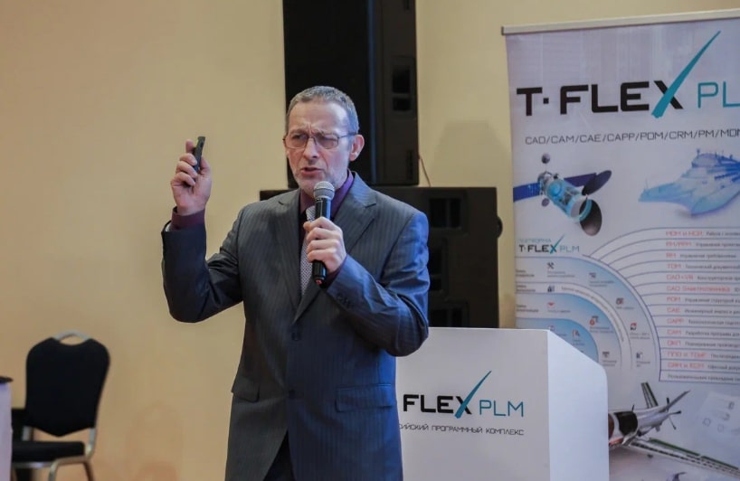 Рис. 7 Игорь Кочан рассказывает про инструменты системной инженерии в ядре платформы T‑FLEX PLM