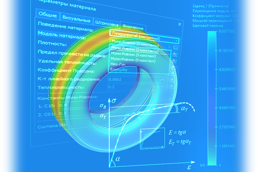 В T‑FLEX Анализ 18 реализована поддержка гиперупругих моделей материалов (рисунок 2):