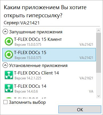 При нажатии на вставленную ссылку появится окно выбора приложения для её открытия. Сохранить выбранный вариант в качестве значения по умолчанию можно, установив флаг Запомнить выбор. Для сброса данной настройки предназначена команда главного меню Сервис > Сбросить настройки открытия гиперссылок.