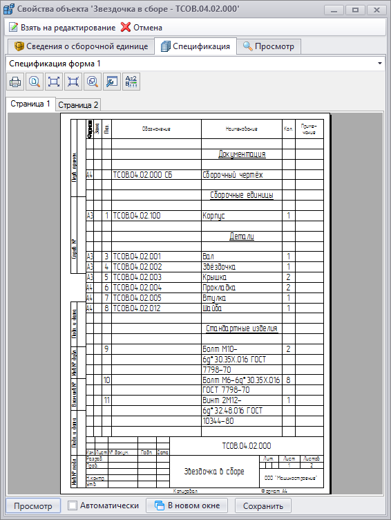 На основе стандартного шаблона, соответствующего ГОСТ 2.503-2013, с помощью генератора отчётов формируется электронный вариант документа.