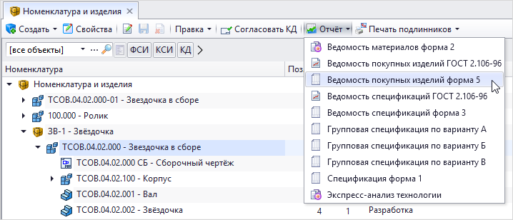В представлении "Все объекты" каждое изделие представлено в виде иерархической структуры.