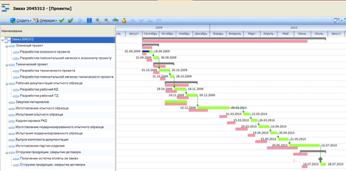 Как и в большинстве систем управления проектами Вам доступны простые и наглядные средства построения дерева работ проекта. Каждую работу вы можете разбить на отдельные подработы до любого приемлемого уровня детализации. Представленный в виде традиционной диаграммы Ганта, проект может быть использован для нескольких целей. Управление сроками планируемых работ, задание последовательности их выполнения и условий запуска. Всё это вы, без труда найдёте в новом модуле.
